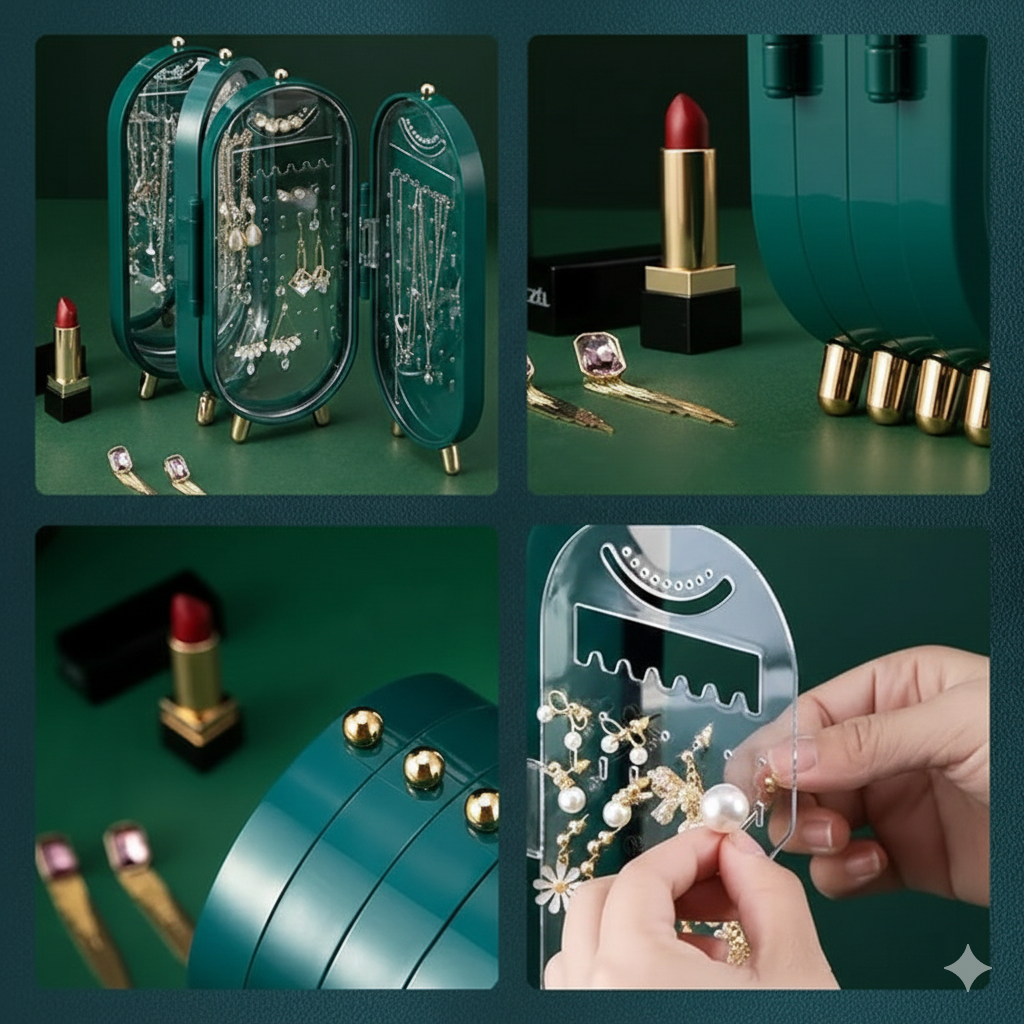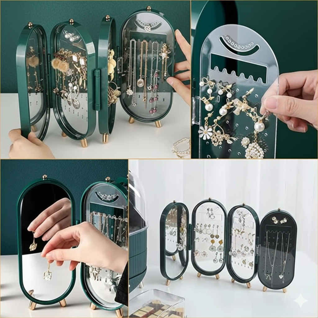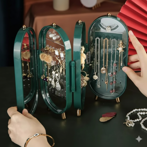 The LuxeGlide Folding Portable Jewelry Organizer is the ultimate travel companion for jewelry lovers who refuse to leave their favorite pieces behind. This smartly engineered display case combines a compact, “clutch-style” footprint with a high-capacity interior, ensuring your accessories remain organized, visible, and completely tangle-free while on the move. Whether you’re heading on a weekend getaway or a long international trip, its durable exterior and soft, anti-scratch lining provide maximum protection for your precious metals and stones.
