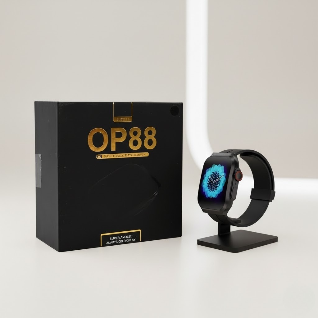 The OP88 Smartwatch features a stunning 1.96-inch Super AMOLED display with a 3D flexible surface design for a premium, curved aesthetic. This high-performance wearable includes essential health monitoring such as heart rate and blood oxygen tracking, alongside Bluetooth calling and multiple sports modes. With its long-lasting 260mAh battery and water-resistant build, it offers both durability and style for modern everyday use.
