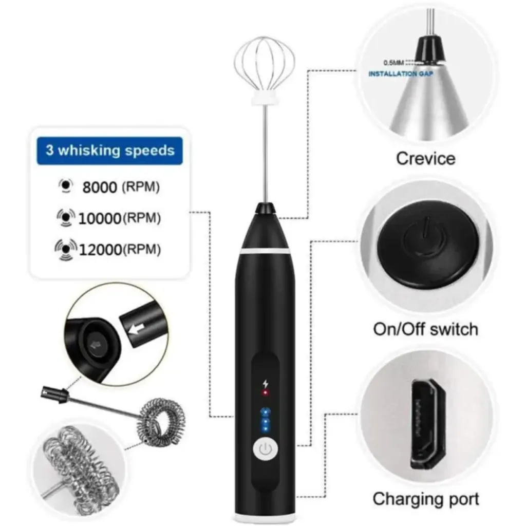 Rechargeable Beater – USB Adjustable Speed Milk Frother, Ideal for Coffee and Latte Art